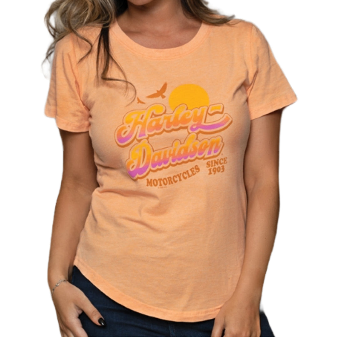 Genuine Harley-Davidson Women's T-Shirt featuring the "Too Chill" design on the front and our award winning Big Ben "Europe's Oldest Harley Dealership - Since 1924" London dealer design on the back. Our number one best selling London dealer shirt never fails to impress.