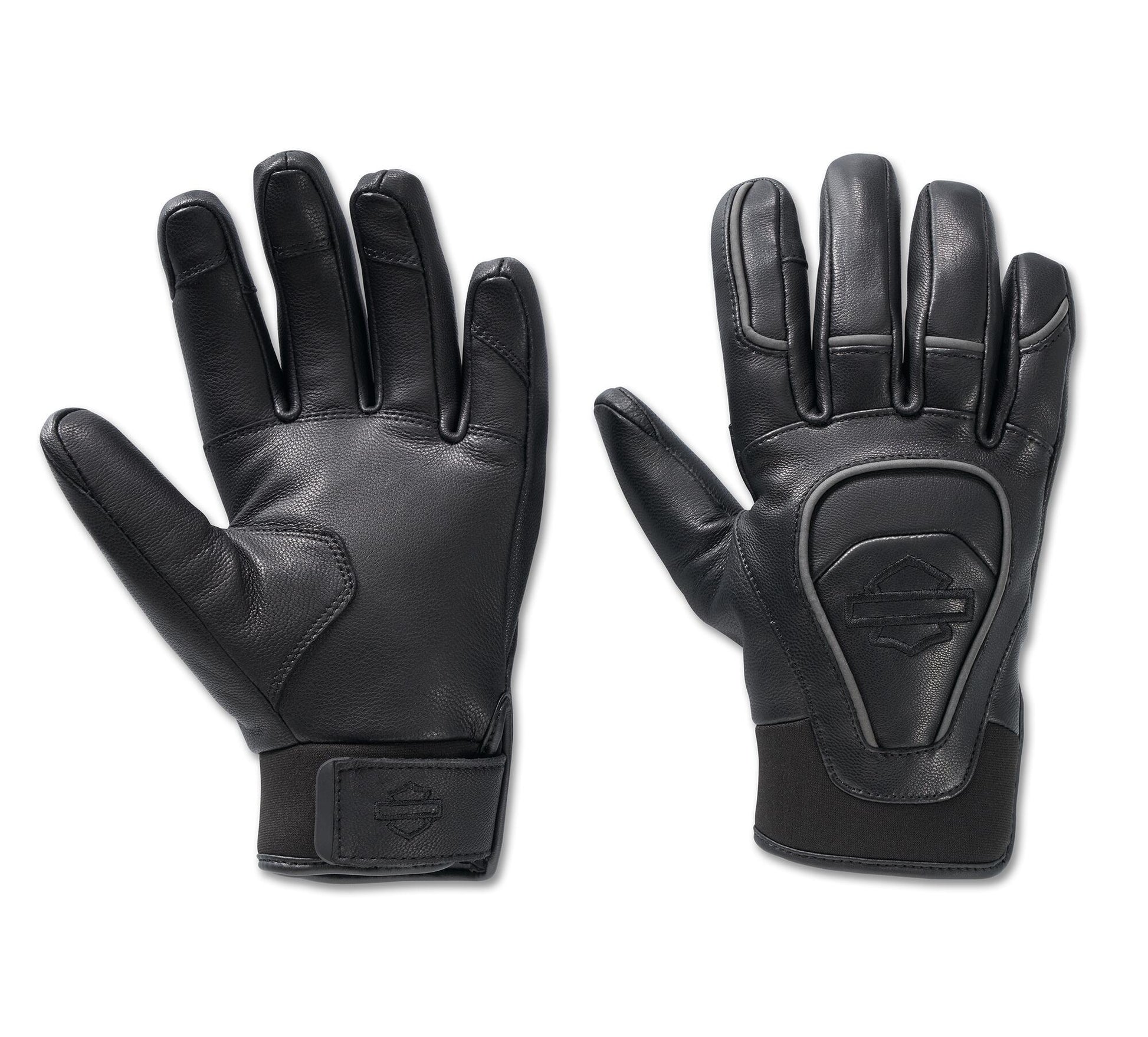 Subtly styled, sensibly engineered is the best way to describe the Ovation Waterproof Leather Gloves. Made from goatskin and neoprene, these full finger gloves are well-equipped to handle rainy riding conditions with a waterproof insert, plus they feature pre-curved fingers, an easily adjustable Velcro® wrist, and reflective piping for added visibility. Minimally branded for a versatile look that complements any Harley-Davidson riding jacket or helmet.