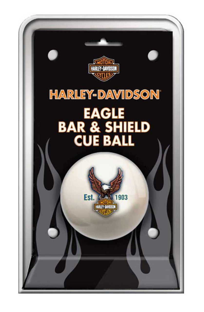 Harley-Davidson® Bar & Shield Eagle Cue Ball, HDL-11149. The Harley-Davidson® Bar & Shield Eagle Cue Ball is sure to rev up your game! The Bar & Shield Eagle Cue Ball is 2.25" diameter. HDL-11149