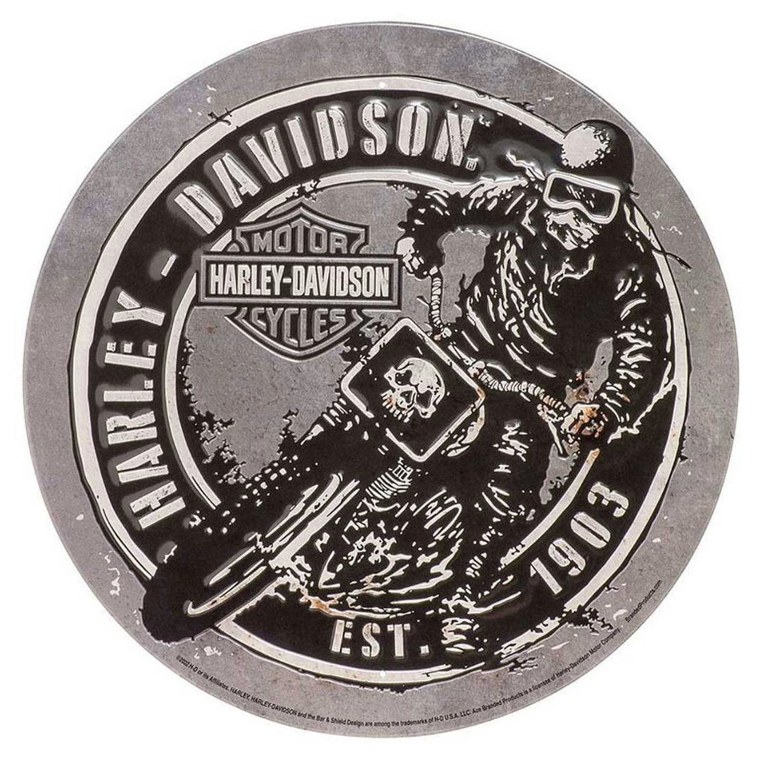 Harley-Davidson® Embossed Round Tin Sign Dirt Track Racer Logo