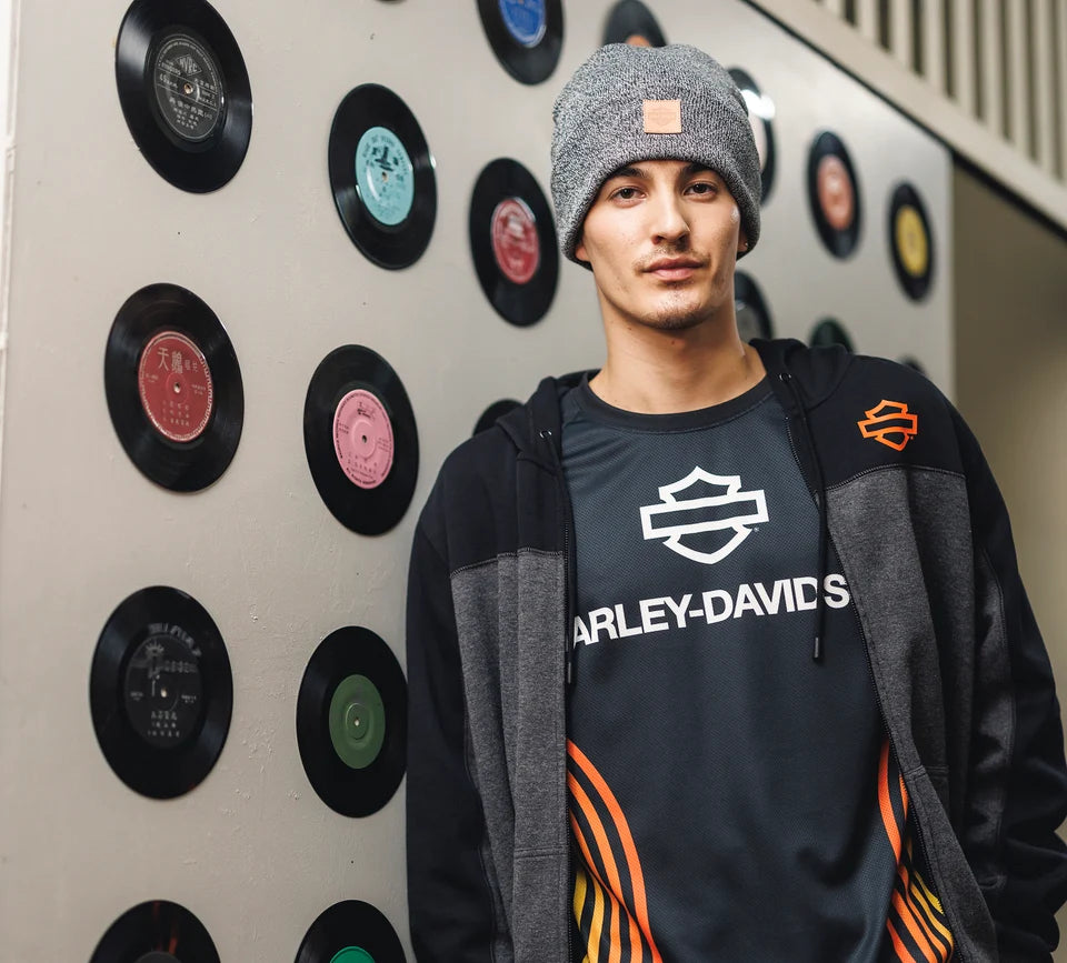 Moto style never expires on the Forever Harley® Leather Patch Beanie. Its acrylic knit construction is heathered for a textured look, and delivers a warmth and softness that feels like wool, minus the itch. Minimally branded with a leather patch branding for a versatile, lowkey look.
