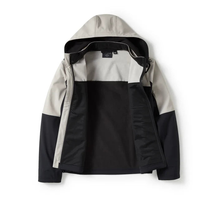 Stay warm and dry as you honor a creative legacy in the Willie G™ Skull Water Repellent Softshell Jacket. Made with water-repellent and windproof materials, it’s an ideal men’s outerwear pick for when the weather takes a nasty turn. It also features zip-closed pockets for securing essentials, a removable hood with toggle cord, and reflective graphics to enhance visibility. Its colorblock style is boldly branded on both sides with the fearless Willie G Skull. Know the history—though the Skull is one of his most popular creations, Willie G. Davidson also designed several motorcycles, including the 1971 FX Super Glide® and the 1977 FXS Low Rider®. Order yours while supplies last.