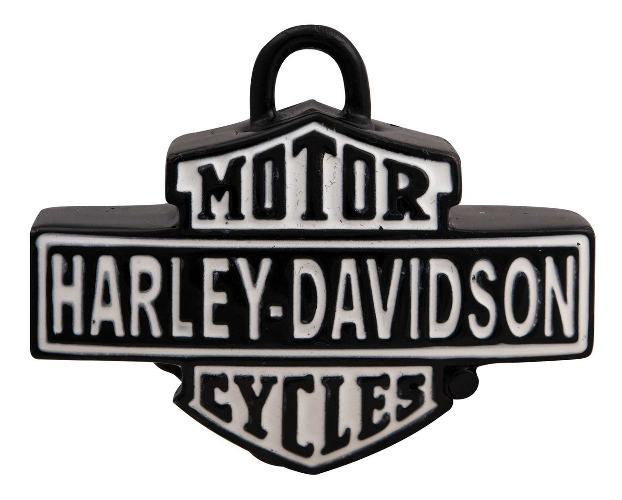 Harley-Davidson® Vintage Bar & Shield Ride Bell - Black/White, HRB112. Custom shaped into a timeless Bar & Shield logo, delivers a contemporary spin on the legendary ride bell. Engraved Harley-Davidson® script with white enamel fill. Made from durable sterling silver with a black finish. Includes ring for hanging.