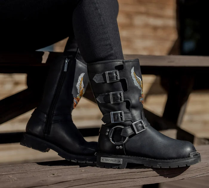 Authentic to the last stitch. The Corley is a standout with eagle embroidery, buckles, harness and toe & heel plate details. Designed with full grain leather and rubber outsole. It is everything HD® you crave packed into one boot.