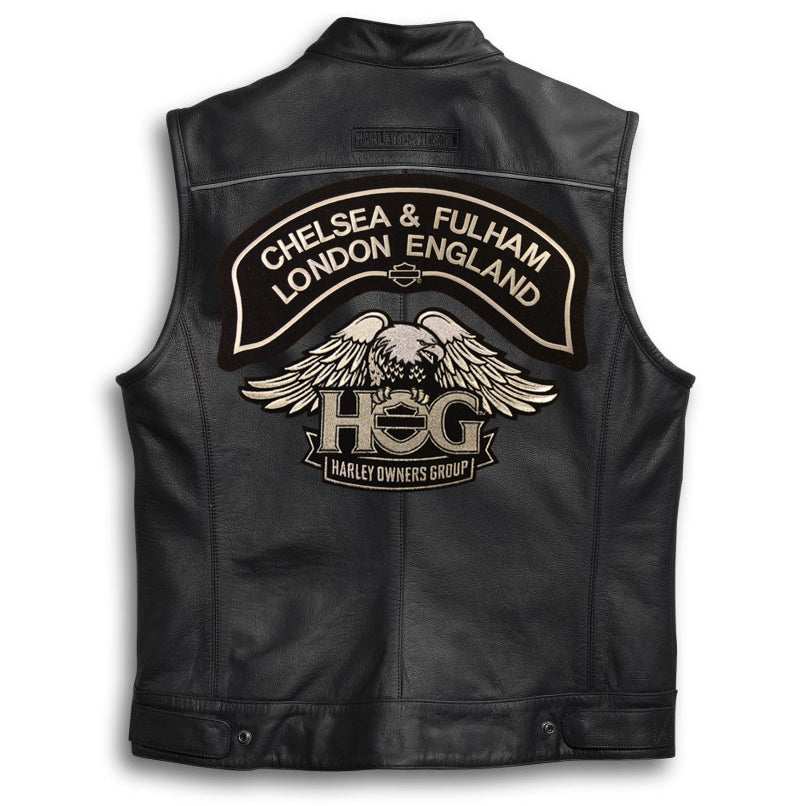 Harley Owners Group new style patch. Genuine H-D, beautifully embroidered. Comes in small and large, the latter designed for back patch use. Perfect with our H.O.G Chapter patches