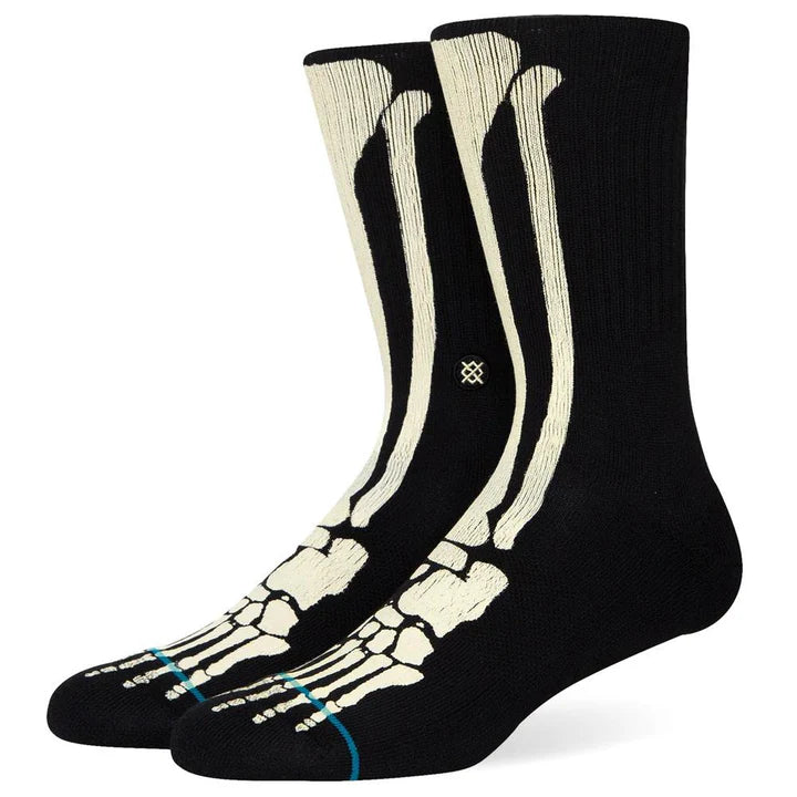 The Stance Bonez Sock adds a spooky twist on the classic black sock with with a bone print from the toe to the opening.