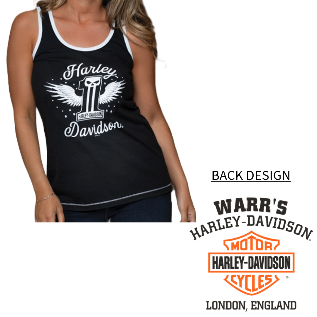 Genuine Harley-Davidson Women's T-Shirt featuring the "Dark Angel" design on the front and our award winning Big Ben "Europe's Oldest Harley Dealership - Since 1924" London dealer design on the back. Our number one best selling London dealer shirt never fails to impress.